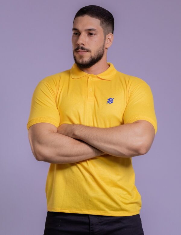Camiseta Polo BB na cor Amarelo Ouro com símbolo bordado na cor Azul