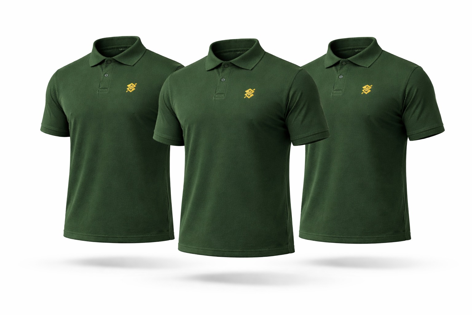 Kit 3 Camisetas Polo BB na cor Verde Bandeira com símbolo bordado na cor Amarela